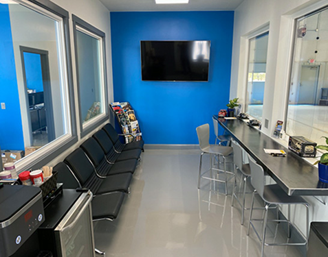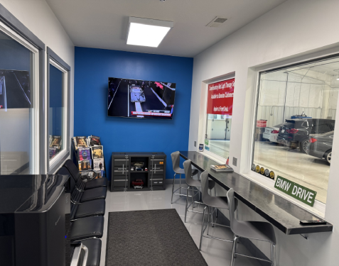 Relax in our modern waiting room while viewing your vehicle’s service in real time through our large shopview windows. Enjoy complimentary drinks, snacks, gourmet coffee and wifi, as well as a convenient workstation bar equipped with charging outlets so you can stay productive while you wait!